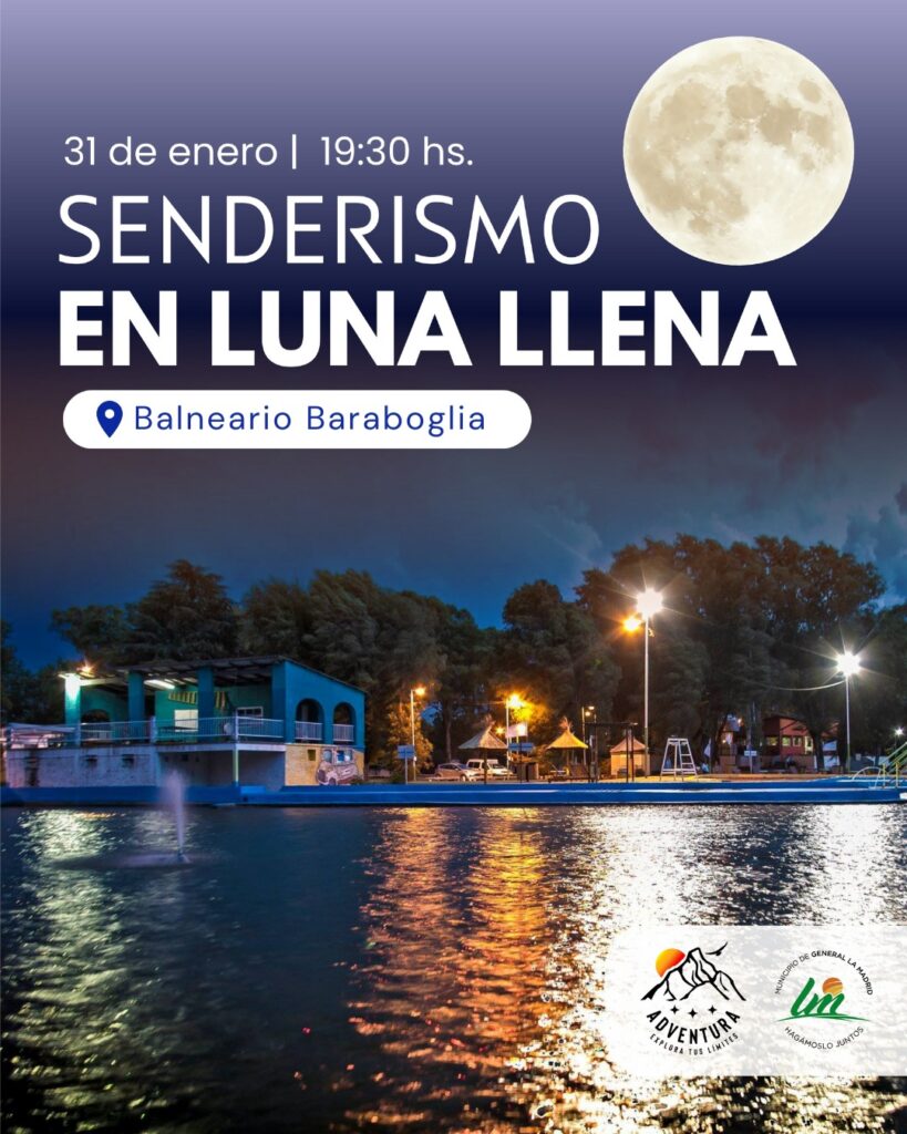 El sábado 31, a las 19:30 horas, se llevará a cabo una actividad senderismo nocturno guiado. La concentración se realizará en el cartel de la plaza de “Las Américas” y luego se irá transitando por caminos naturales hasta el balneario “Eduardo Baraboglia”, para conectar con el paisaje, el aire libre y el ritmo de la naturaleza”. La propuesta finaliza con un picnic a la canasta y el regreso en grupo.