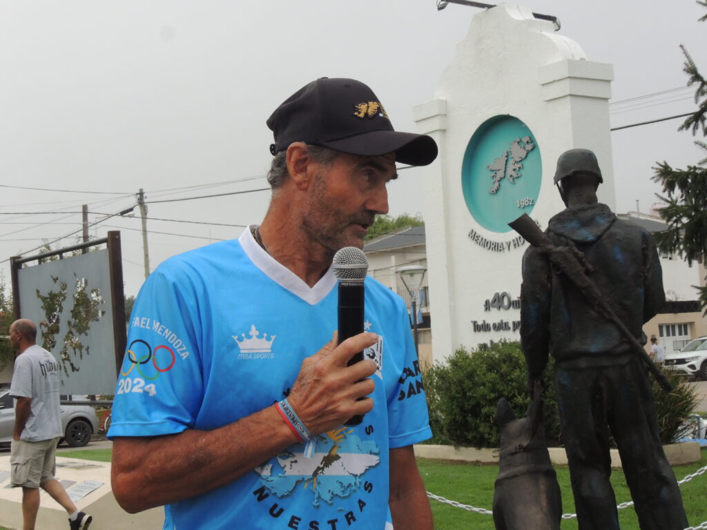 Antes de la largada simbólica, Jorge Rinaldi recalcó que “en cada paso recuerden a los que quedaron en Malvinas”.