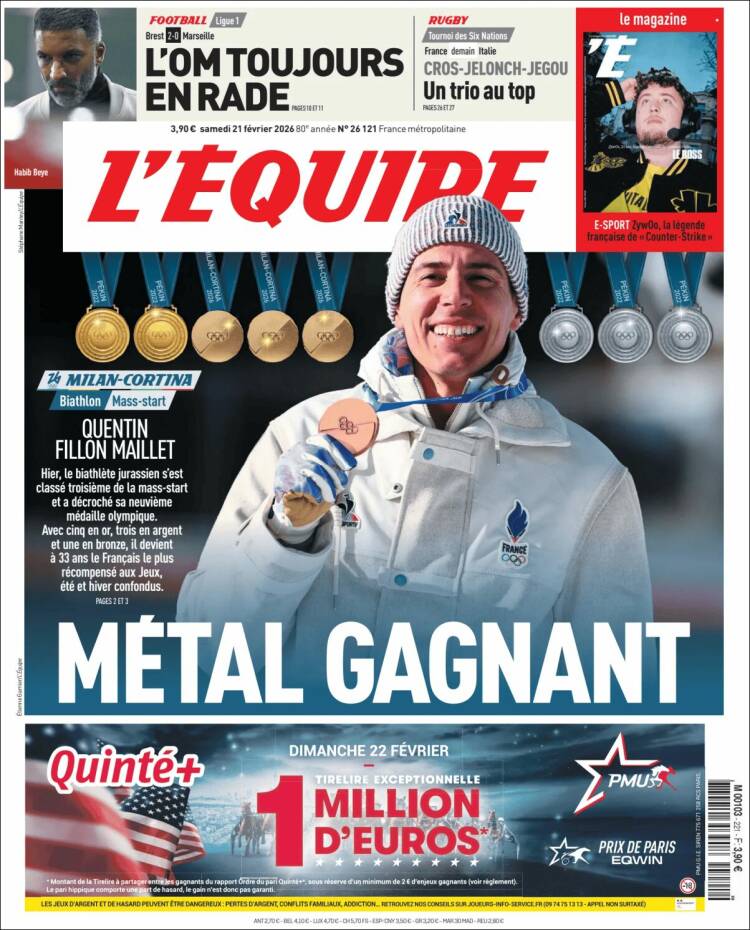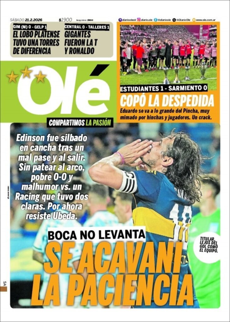 Este sábado (21/2) los diarios deportivos del mundo tienen una variedad muy importante de titulares. Olé hace foco en el empate entre Boca y Racing. Los periódicos españoles prácticamente no tienen un tema común. L´Equipe sigue informando sobre la Olimpíadas de Invierno y Corriere dello Sport habla de la actualidad de Juventus.