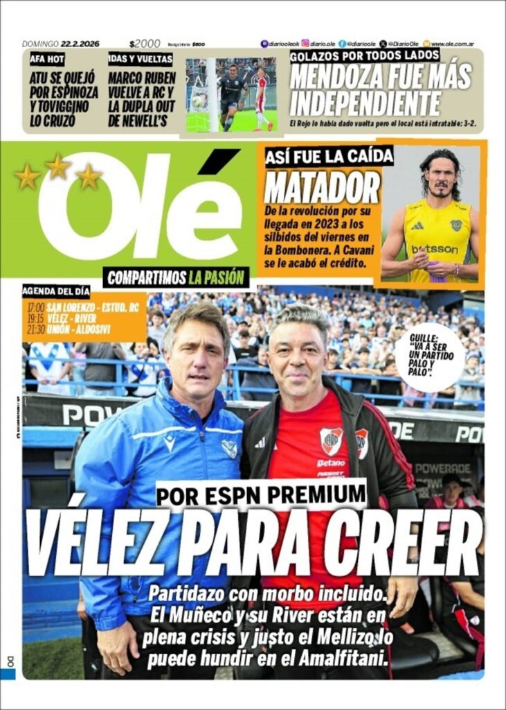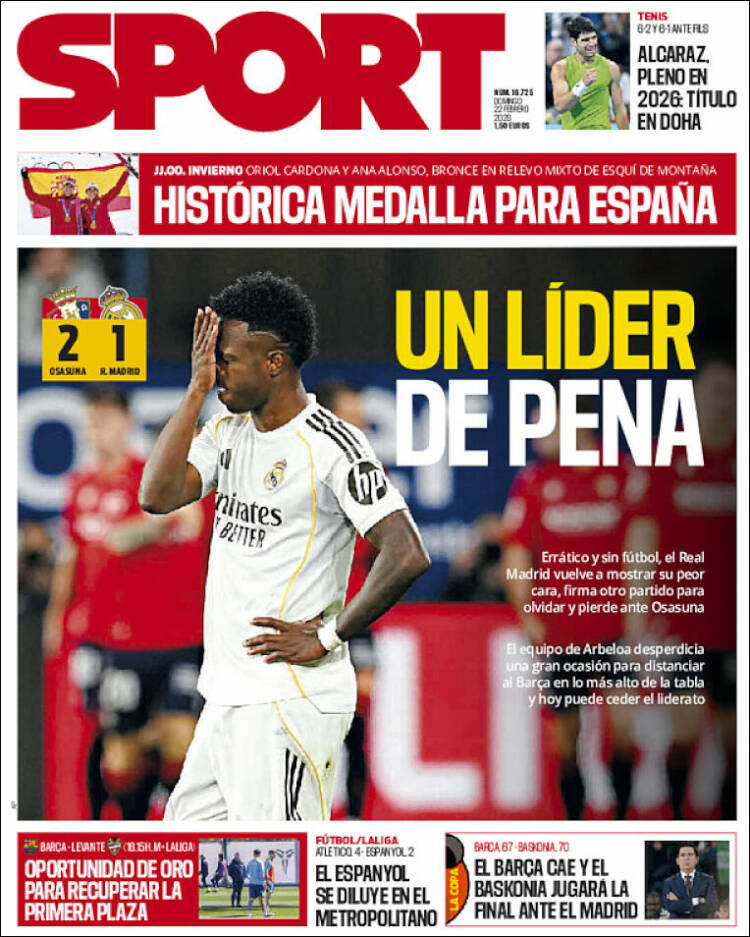 Los diarios deportivos del mundo presentaron este domingo sus tapas. El tema dominante en todos los periódicos españoles es la derrota del Real Madrid. Olé apunta al partido entre Vélez y River. L´Equipe se ocupa de las Olimpíadas de Invierno que llegan a su fin. Corriere dello Sport vuelve a hacer foco en la Juventus.
