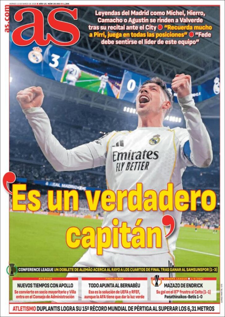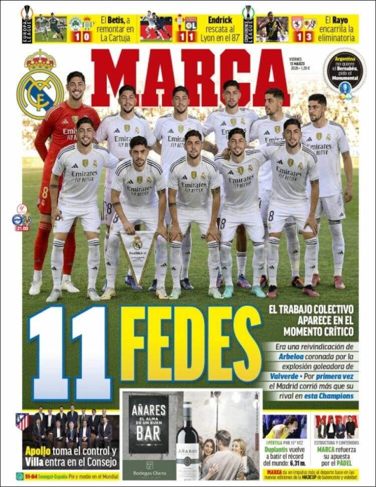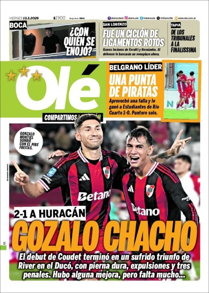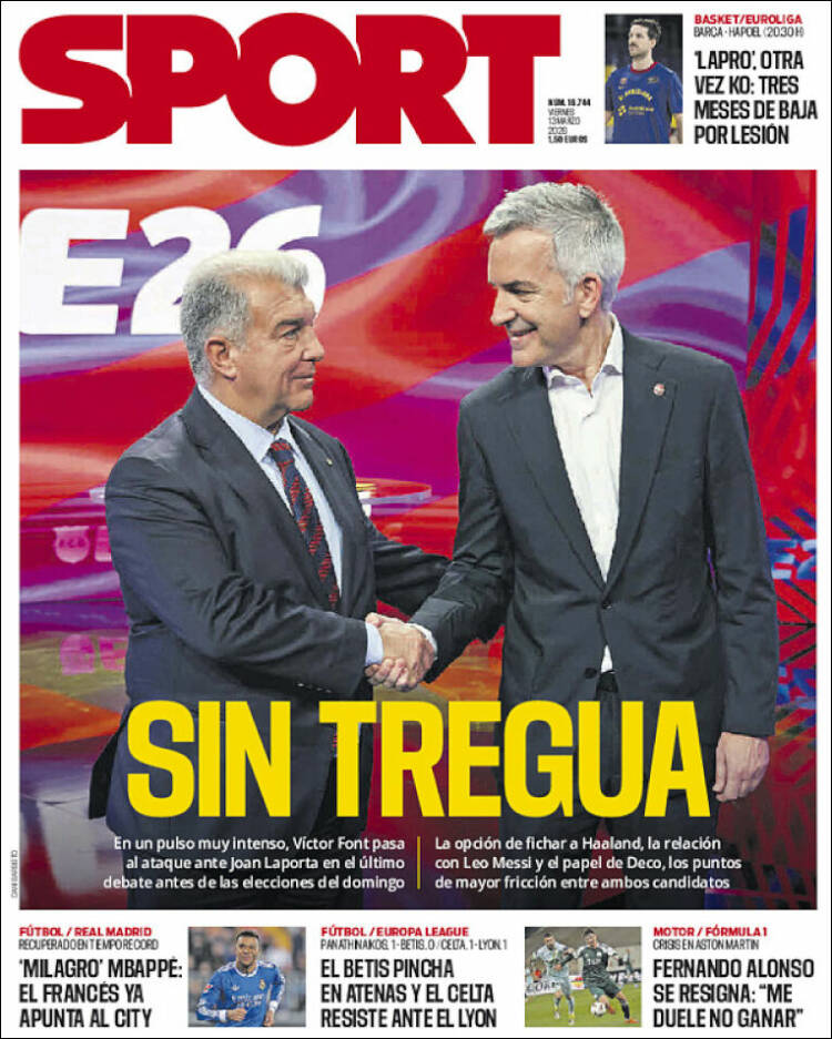Este viernes (13/3) los diarios deportivos del mundo vuelven a centrar sus títulos en el fútbol. Cada uno se centra en lo que sucede en su país y en las competencias vernáculas. Sólo Sport y Mundo se diferencian del resto ya que se ocupan de la situación política del Barcelona como título central.