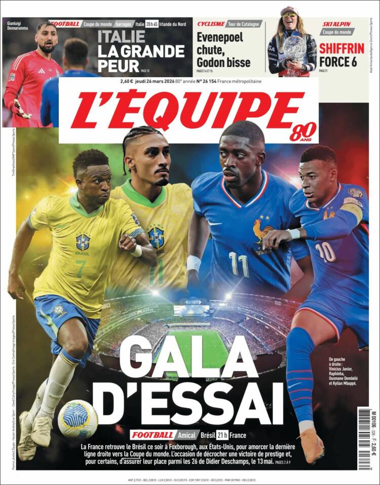 Este jueves (26/3) los diarios deportivos del mundo tienen como eje central el fútbol y los compromisos de las respectivas selecciones en los amistosos que se disputarán en los próximos días, previos al Mundial.