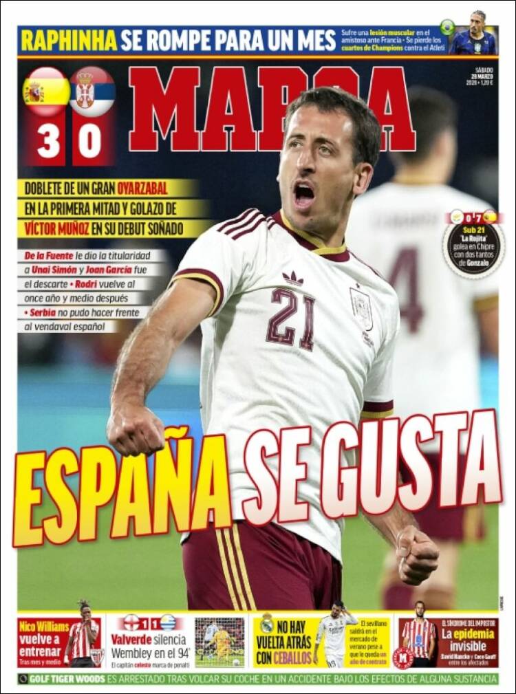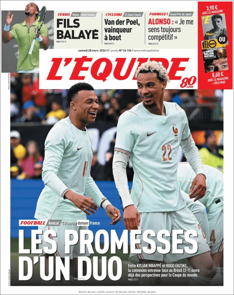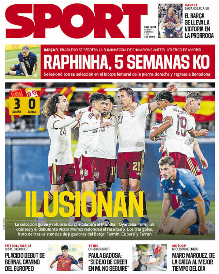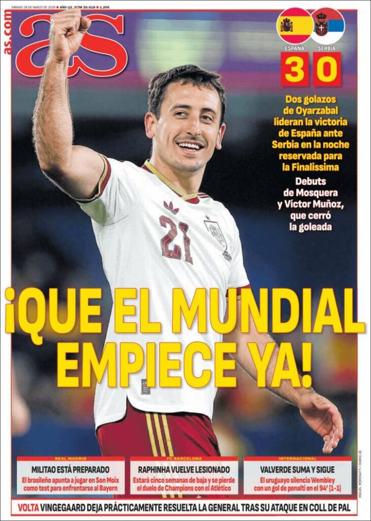 Este sábado 28/3, los diarios deportivos del mundo tienen como principal tema de tapa el fútbol y las actuaciones de las respectivas selecciones en los partidos previos al Mundial de Estados Unidos, México y Canada.