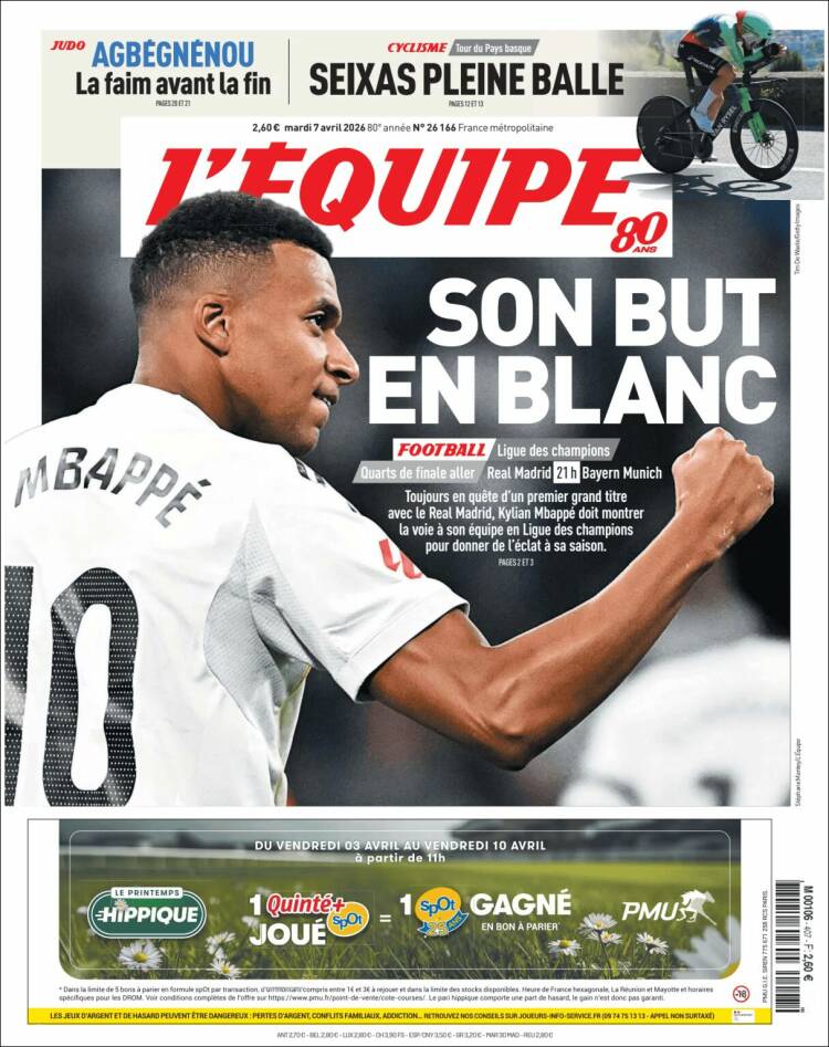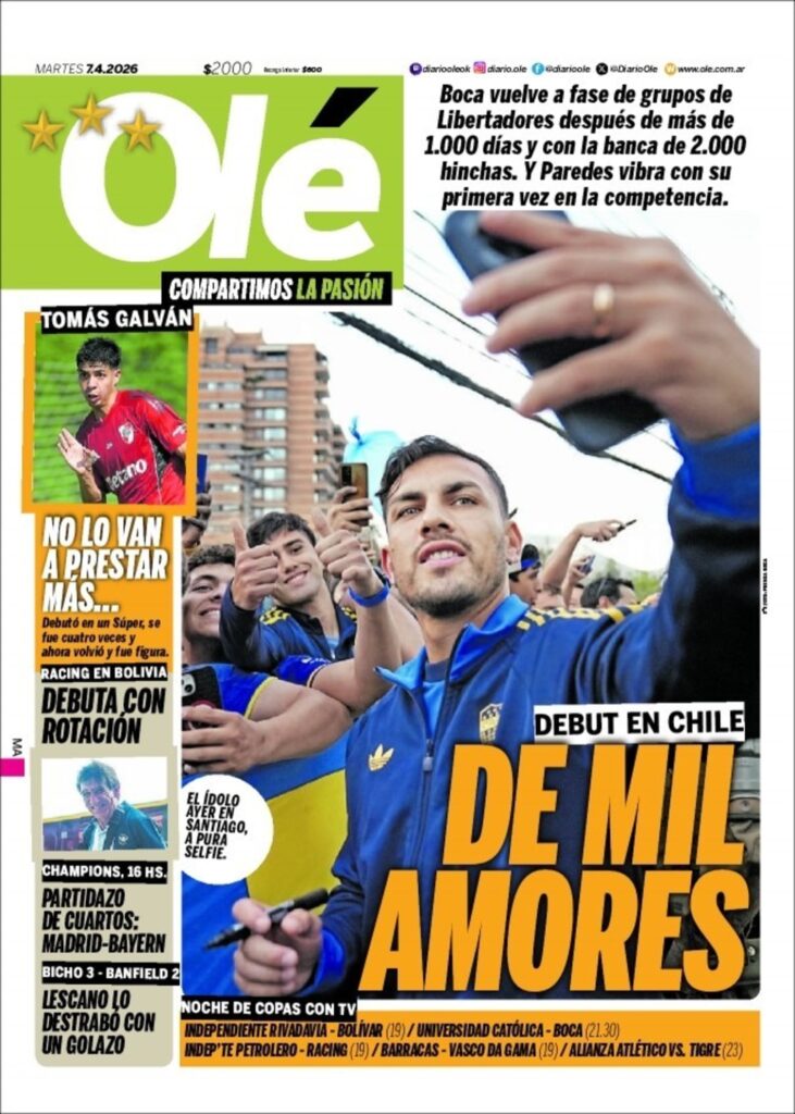 Este martes (7/4) los diarios deportivos del mundo vuelven a poner al fútbol como título central de sus tapas. Los europeos con los partidos de la Champions, mientras que Olé elige a Boca como principal tema.