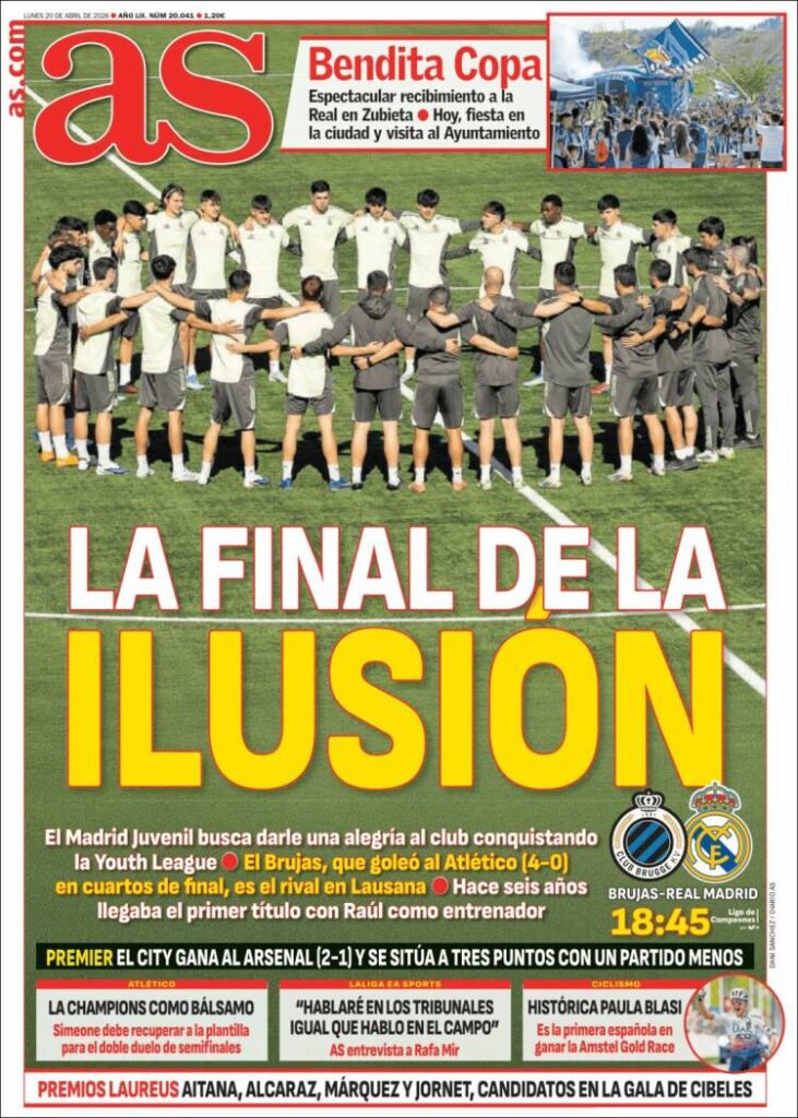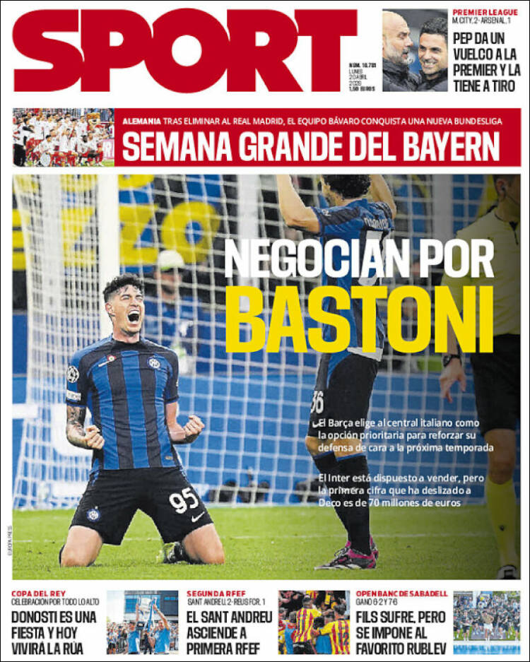 Este lunes (20/4) los diarios deportivos del mundo se reparten los titulares entre el fútbol, que ocupa la mayoría de los temas centrales, y el tenis con la consagración de Gael Monfilis en Barcelona.