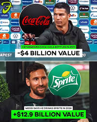 En contrapartida “Coca-Cola perdió aproximadamente 4 mil millones de dólares en valor de mercado después de que Cristiano Ronaldo apartara sus botellas de refresco y pidiera agua durante una rueda de prensa de la Eurocopa 2020, lo que provocó una caída del 1.6% en el precio de sus acciones”.