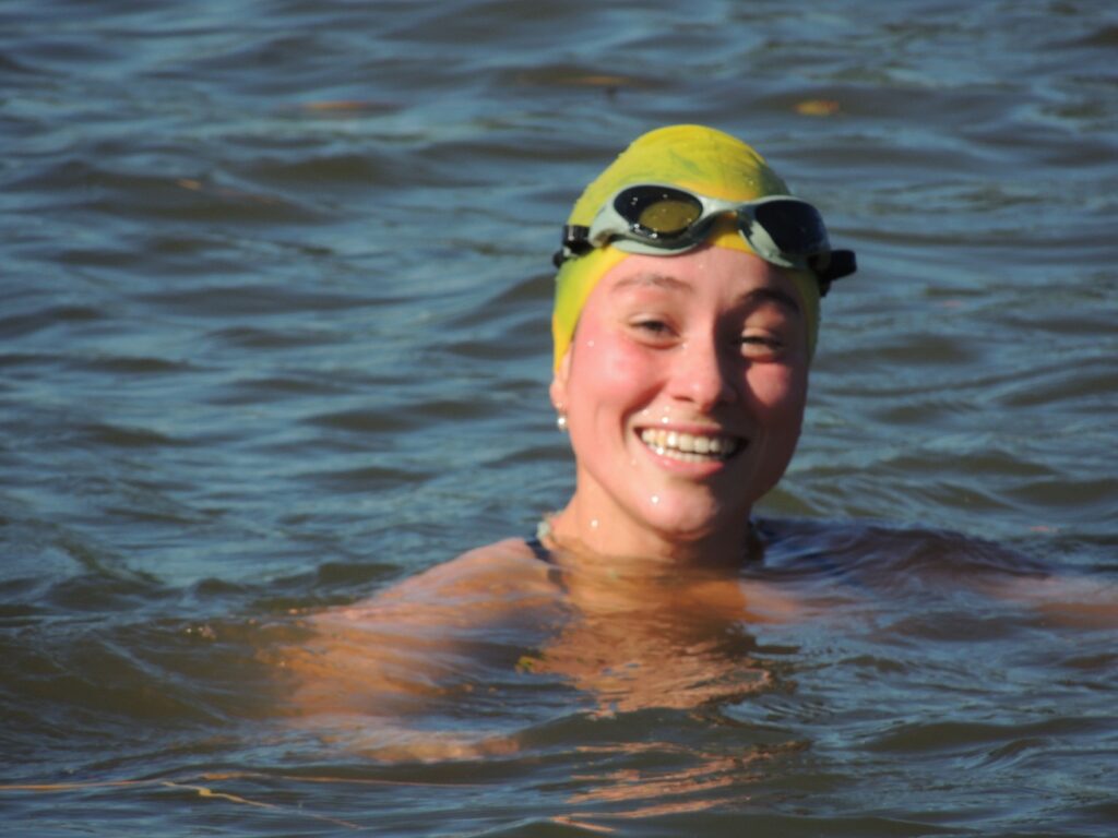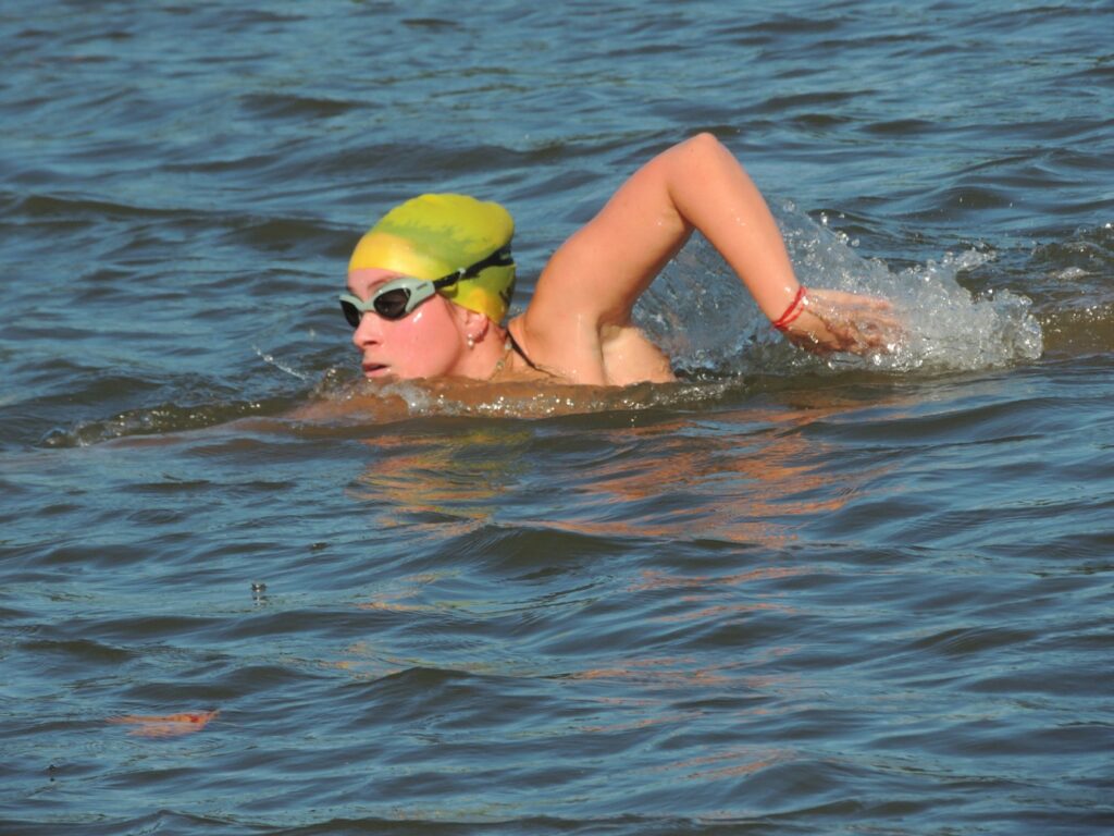 Garay se desliza en el agua sin resistencia, a pesar de que el oleaje -teniendo en cuenta las condiciones propias del lugar- la golpee constantemente cada vez que levanta la cabeza para respirar. “Este es mi lugar en el mundo”, insiste. “Acá soy feliz”, sintetiza la nadadora lamatritense, y se nota.